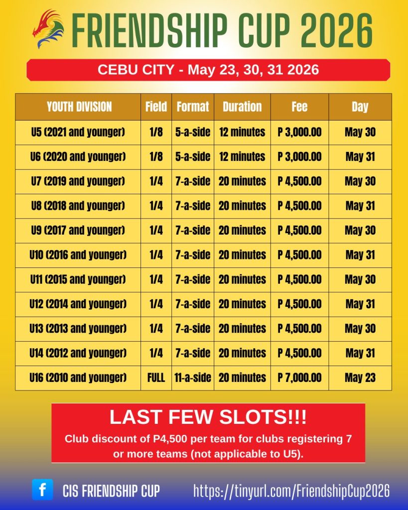 THE Cebu International School will host the Friendship Cup 2026, bringing together young football talents for an exciting multi-day tournament…