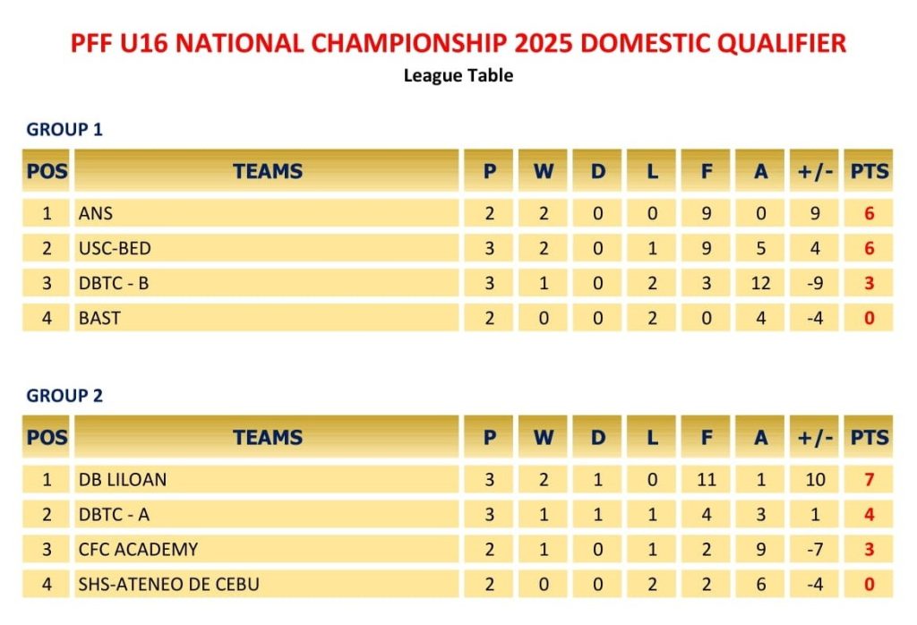 With the win, ANS now sits comfortably at No. 1 with six points a goal difference of nine, five more than USC-BED.