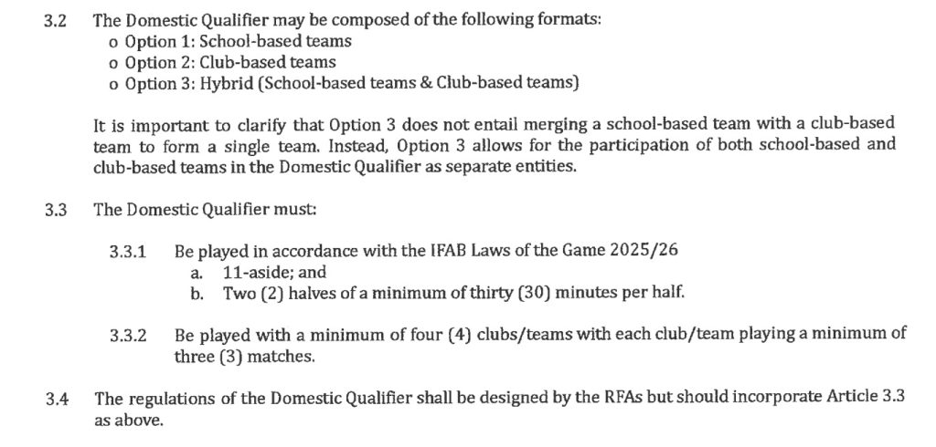 For the U16 qualifiers, the PFF says RFAs may adopt a club-based, school-based or both club and school-based competitions. However, clubs and schools can’t combine to join the qualifiers. The PFF also said RFAs may adopt its own eligibility rules.